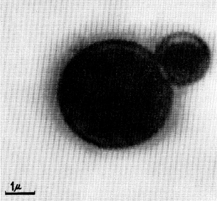 Microfotografía una microesfera con yema emergente, fruto de la acción de los adenilatos en una mezcla 1:4 de proteinoides ricos en lisina y proteinoides ácidos a pH 9,0. Crédito: Ref. 22.