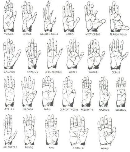 No podemos explicar que nuestras manos tengan exactamente los mismos huesos que nuestros pies sin recurrir a las extremidades similares de los mamíferos de los que procedemos. Seríamos incapaces de entender por qué nuestro eje de sustentación esta en posición dorsal en lugar de central si no lo comparamos con la columna vertebral cuadrúpeda. Pensaríamos en nuestro canal del parto como obra de un sádico, si no lo analizáramos como producto de una pelvis de vivíparo modificada.