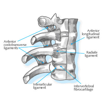 A pesar de ser fundamentalmente de naturaleza ósea (las vértebras están constituidas por tejido óseo esponjoso), la columna presenta estructuras cartilaginosas y conjuntivas, como los discos intervertebrales de cartílago situados entre los cuerpos de las vértebras, que sirven de cojinete tanto durante el movimiento como en el soporte del peso cuando el cuerpo está erguido. Un elevado número de ligamentos sujeta unas estructuras con otras permitiendo la consistencia, junto con la musculatura, de este eje corporal compuesto de pequeños eslabones óseos.