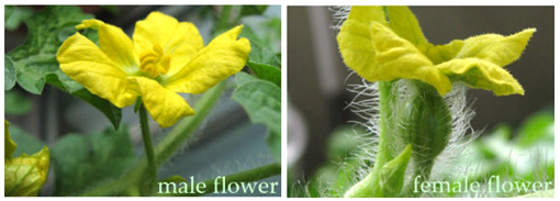 Izquierda, flor macho de sandía. Derecha, flor hembra de sandía. Crédito: KingSeeds.