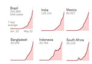 En 6 de los paises más poblados del mundo y con sistemas sanitarios deficientes la COVID-19 está en fase exponencial