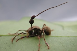 Cadáver de hormiga con el cuerpo fructífero de un hongo del género Cordyceps (alias Ophiocordyceps). Crédito: The Earthy Report